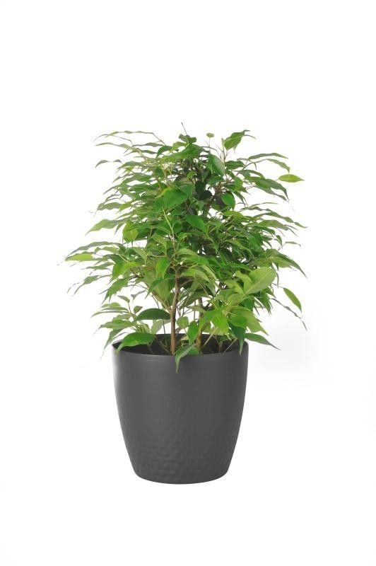 Plastový obal na kvetináč v metalických farbách určený do interiéru.