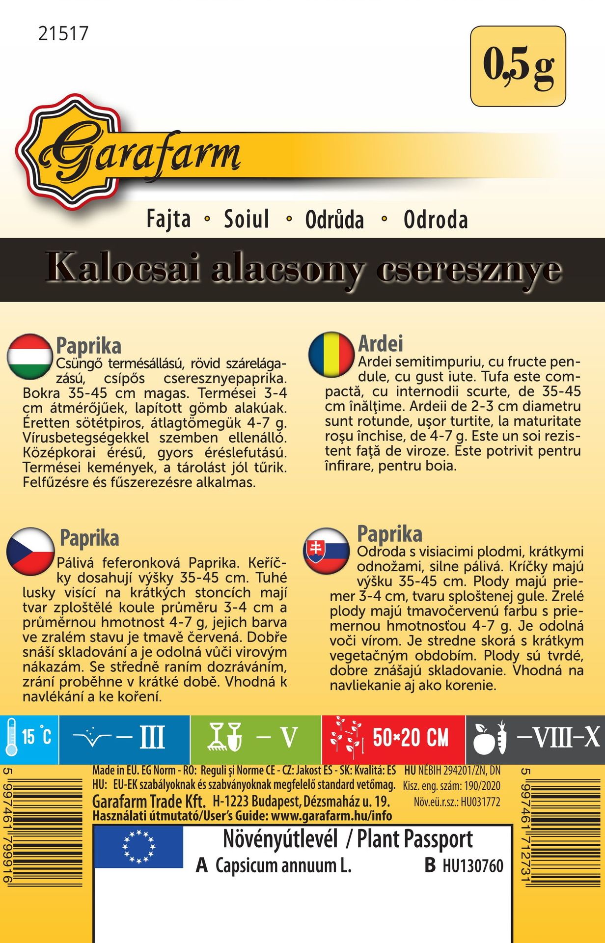 Úvod MAĎARSKÉ OSIVÁ GARAFARMPaprika Kalocsai alacsony cseresznye - feferónka