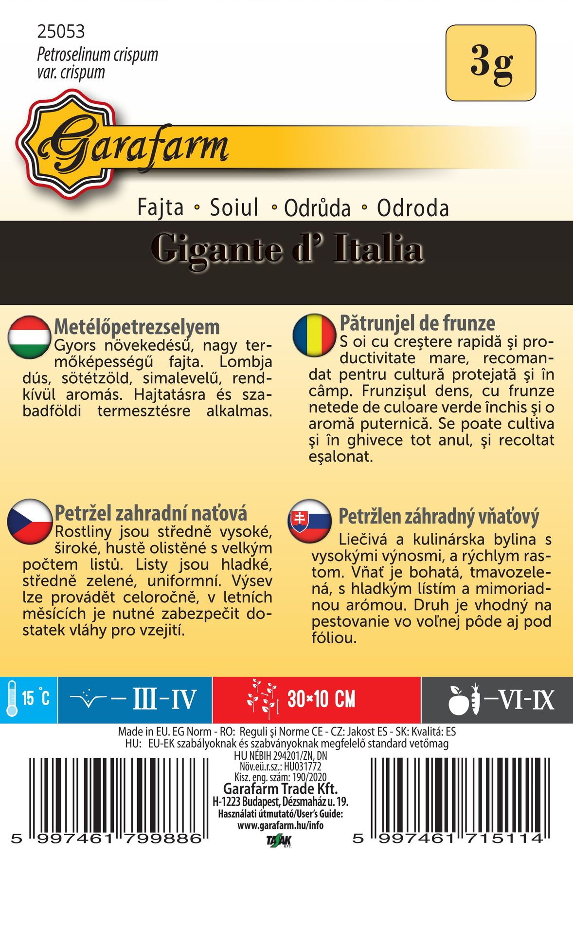 Rýchlo a bujne rastúca, veľmi úrodná odroda vňaťového petržlenu, nevytvára koreň.