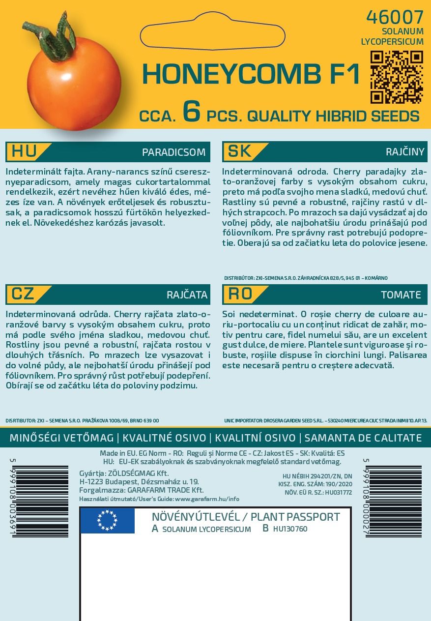 Nedeterminovaná odroda. Zlatooranžové cherry paradajky s vysokým obsahom cukru, vďaka čomu majú vynikajúcu sladkú, medovú chuť, vernú svojmu menu. Rastliny sú silné a robustné, paradajky rastú v dlhých strapcoch. Odporúča sa presádzať, po mrazoch sa môže vysádzať na voľnom priestranstve, ale najlepší výnos dosahuje pod plastovou fóliou. Pre správny rast je potrebné vyväzovať. Zber je možný od začiatku leta do polovice jesene.